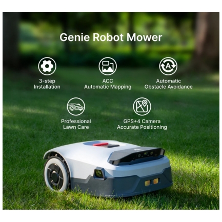 S svojim močnim motorjem in izjemno nizkim težiščem Genie ostane trdno na tleh. Brez napora se vzpenja po naklonih do 24°/45% in brez napora premaguje ovire - resnično terensko vozilo med robotskimi kosilnicami.