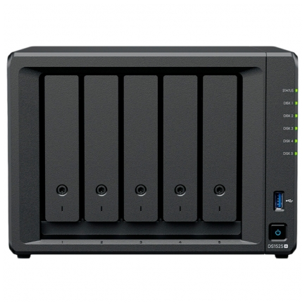 Synology DiskStation DS1525+ Tower, 5-Bays 3.5'' SATA HDD/SSD, 2 x M.2 2280 NVMe SSD slot, CPU AMD Ryzen V1500B 4-core 2.2 GHz, 8 GB DDR4 ECC SODIMM, 2x RJ-45 2.5 GbE LAN Port; 2x USB 3.2; 1 xUSB Type-C expansion port; 2.67 kg; 3yr warranty